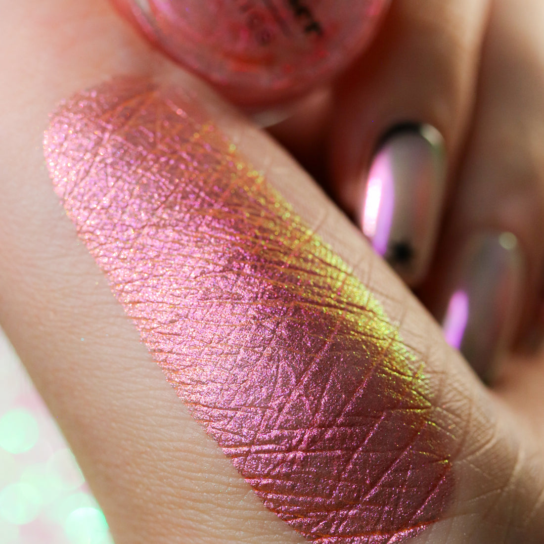These aren’t your typical eyeshadows. Our cream flakes are designed to create a radiant, multi-dimensional finish that shifts beautifully in the light, giving your makeup an otherworldly glow. Each pot contains layers of colour that catch the light differently depending on the angle, creating a stunning multichrome effect that feels magical every time you wear it.