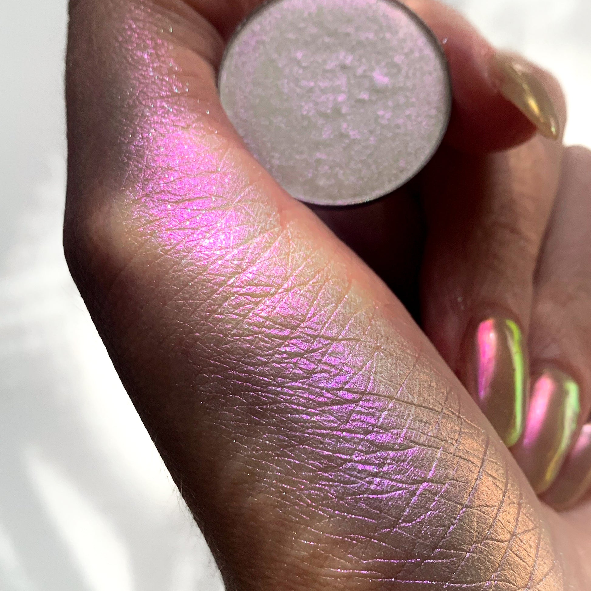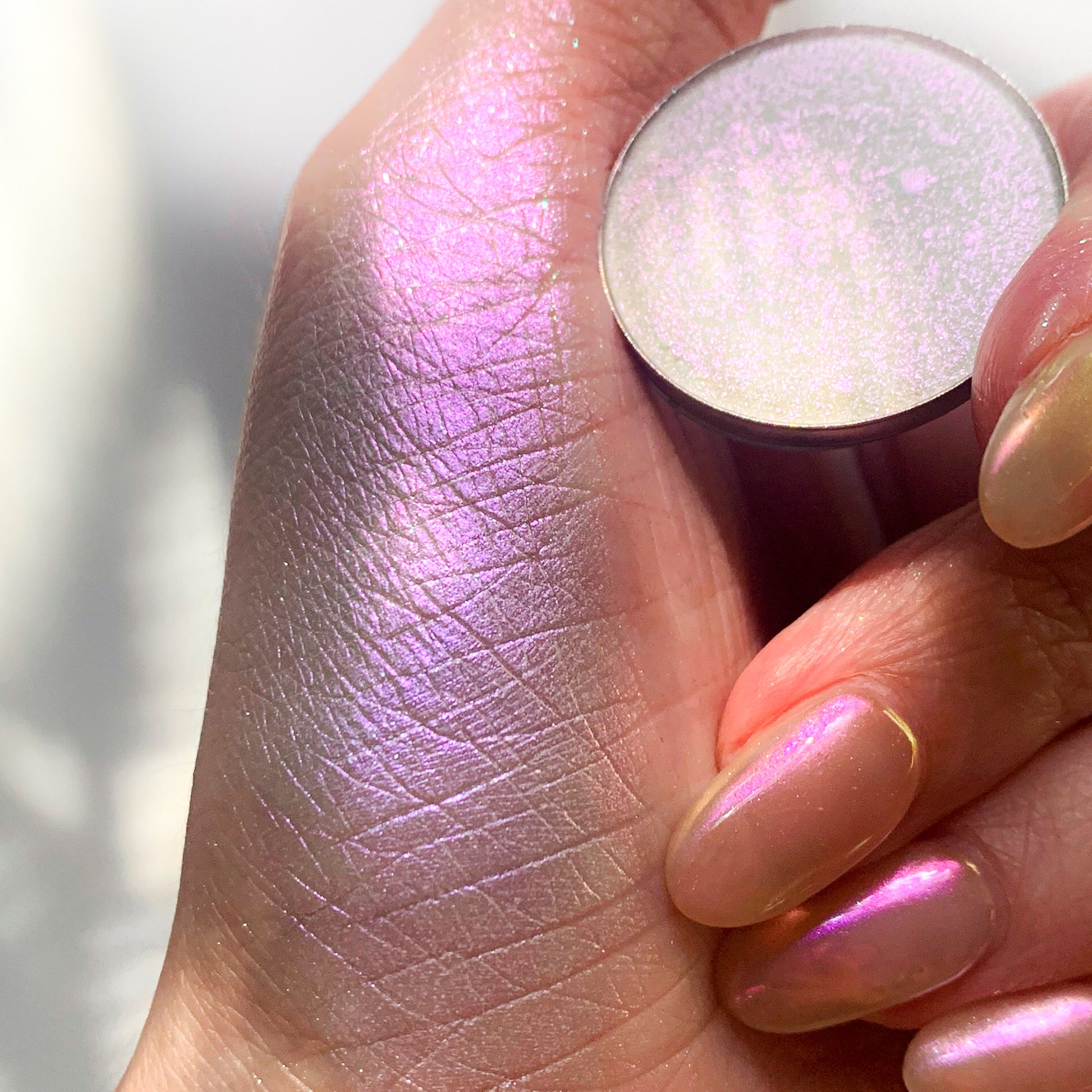 AmuletĀ is a pearlescent white shade with pinkish / violet reflects. This shade has no glitter to it and it very similar in formula to our eyeshadow UtopiaĀ .