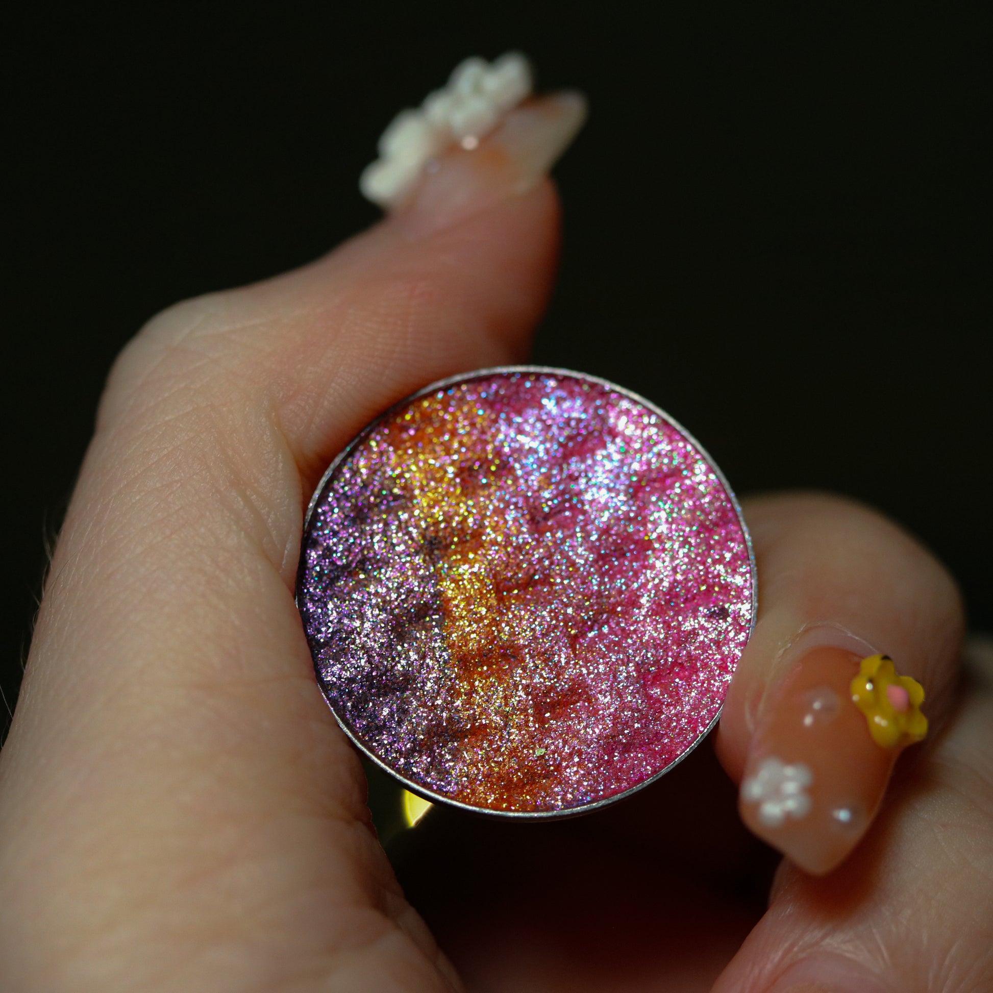 About Texture/Finish: A captivating rainbow pan featuring four complementary shades in one. Whether you swipe across pan for a stunning gradient effect or dip into each hue individually, this versatile pan lets you customize your look with ease.