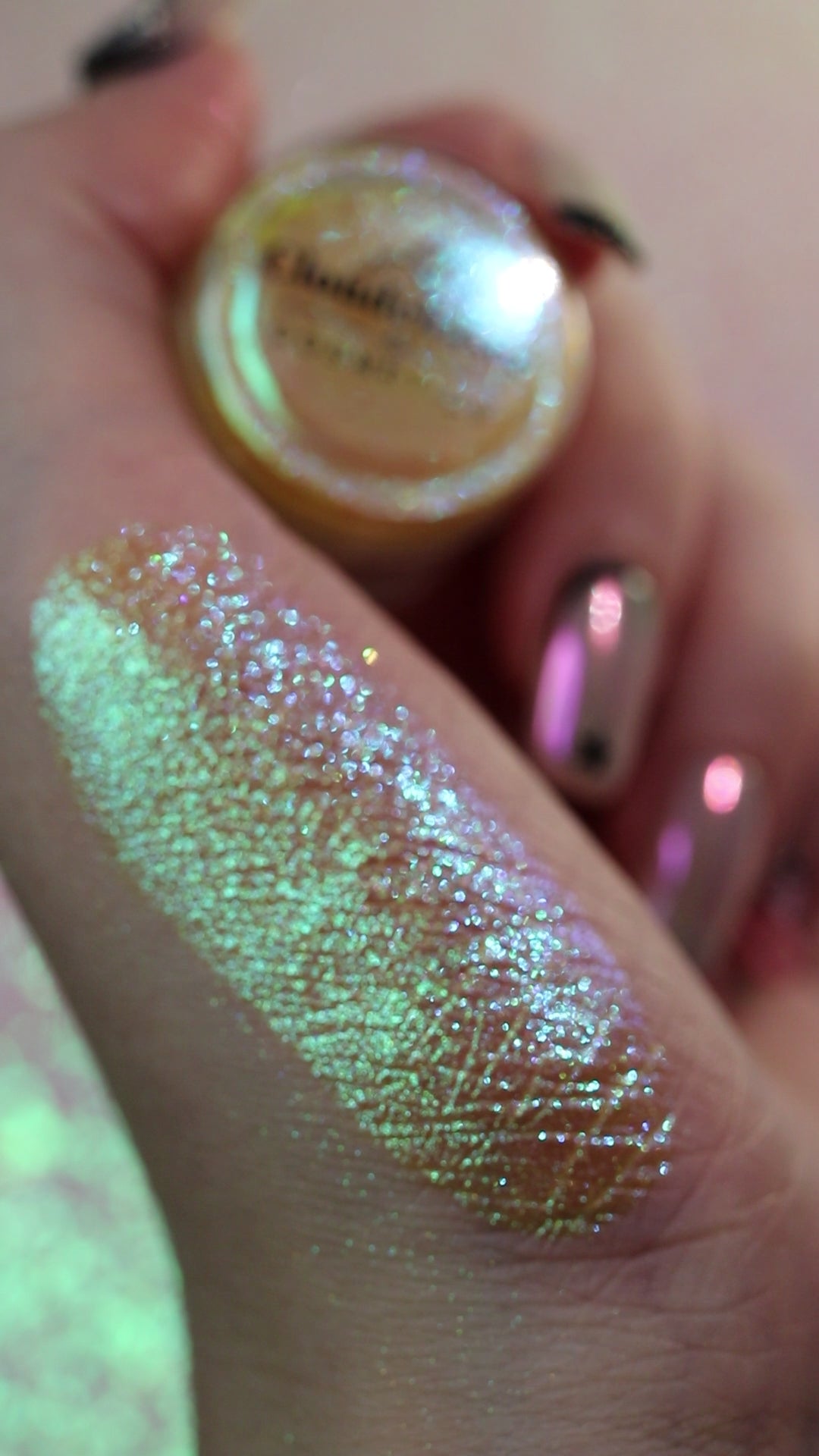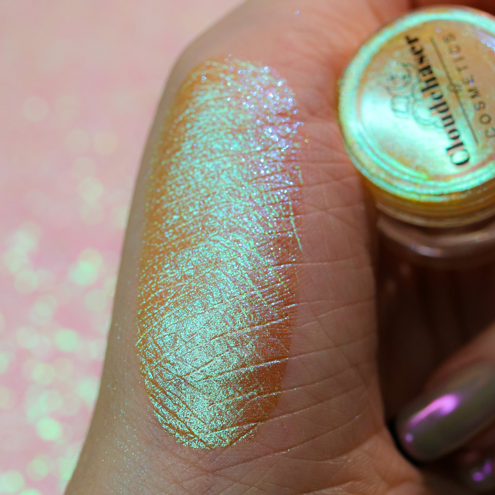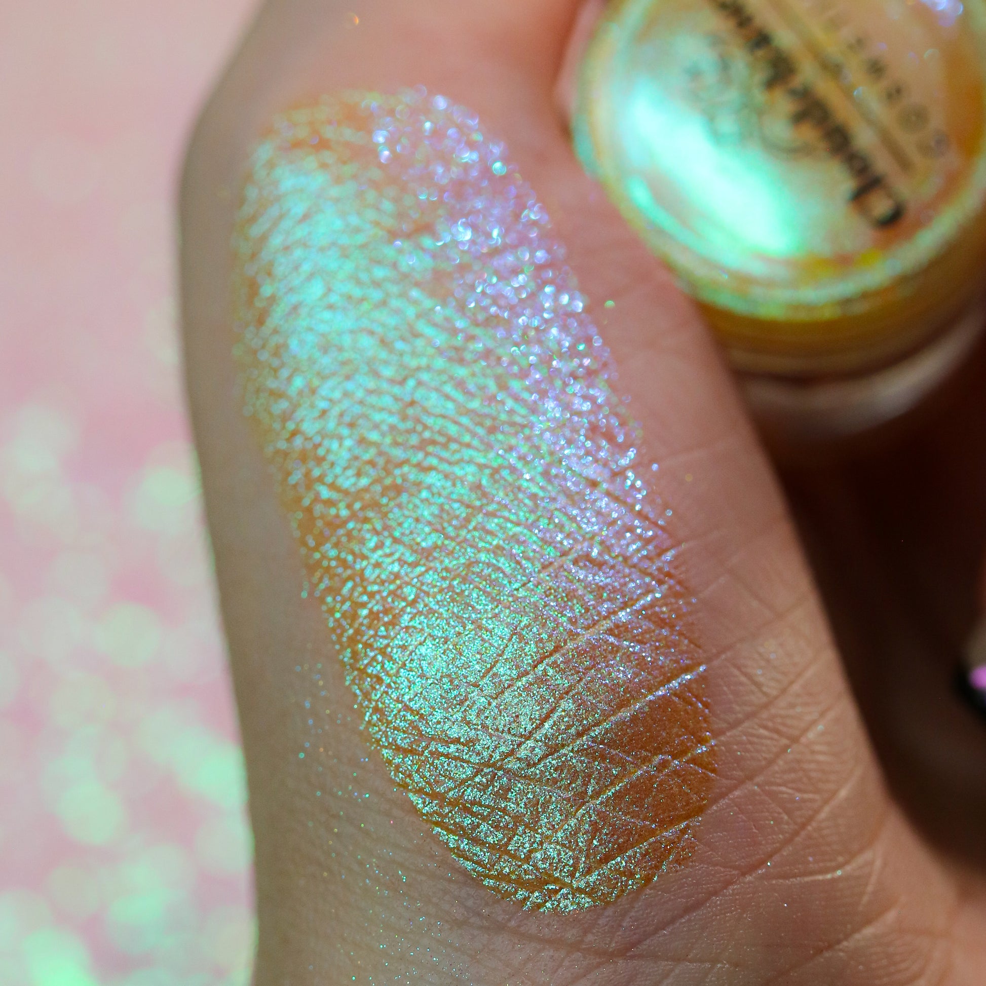 The Ominous Ostara Collection has a smoother finish & formula when compared to our other Cloud Dust Collections. These shades are shifty, and will look very different depending on the base you lay them over. They can be worn alone or make amazing topper shades. They have a sheerer base that can be worn as such, or built up to a more opaque finish.