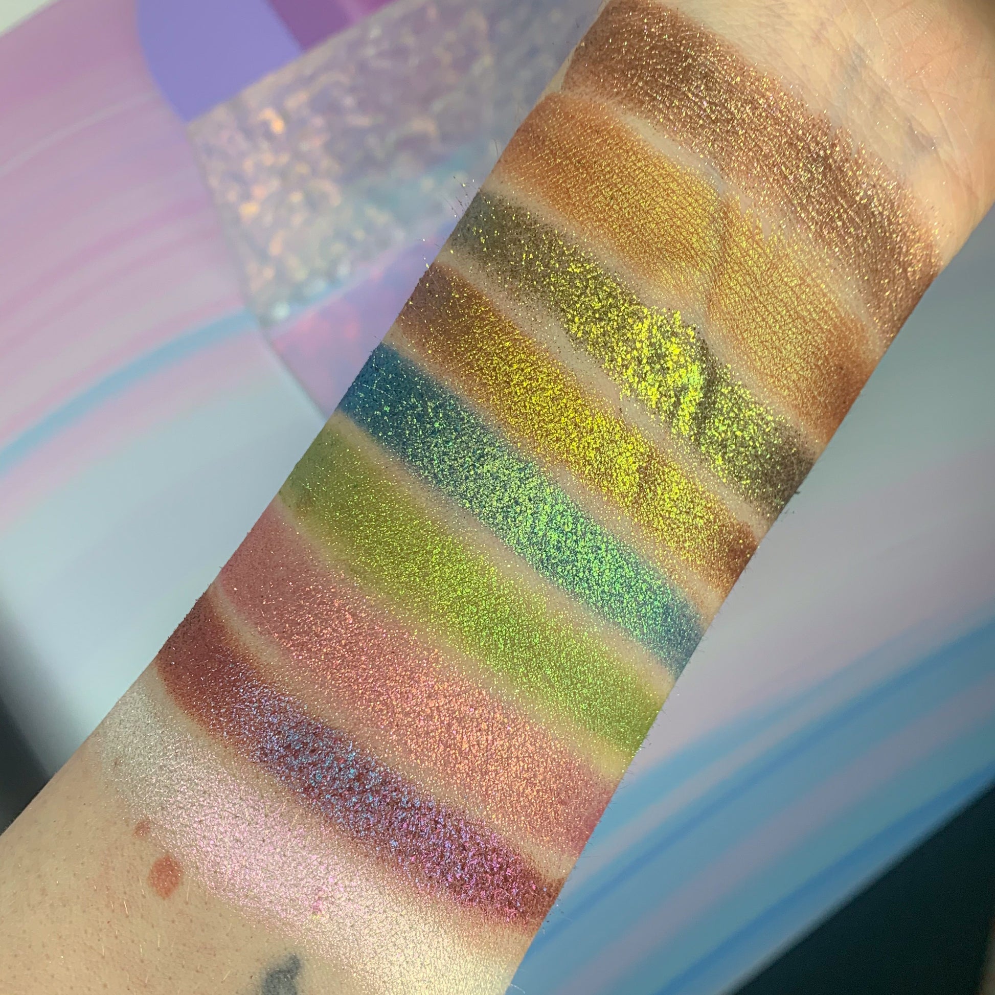 Introducing the Cosmic Energy collection, a radiant selection of 9 custom curated eyeshadows that will electrify and elevate your makeup game. Our Cosmic Energy collection features a dynamic blend of finishes including luminous shimmers, and radiant metallics, all infused with a breathtaking golden radiance that evokes the cosmic energy of the universe.