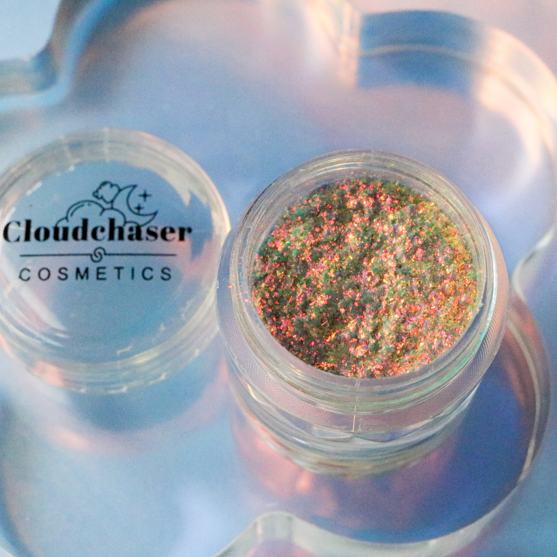 Our Enchanted Meadows collection has a more sheerer, flakier finish & formula when compared to our other Cloud Dust Collections. They make amazing topper shades and add lots of extra fun sparkle and dimension to your look.