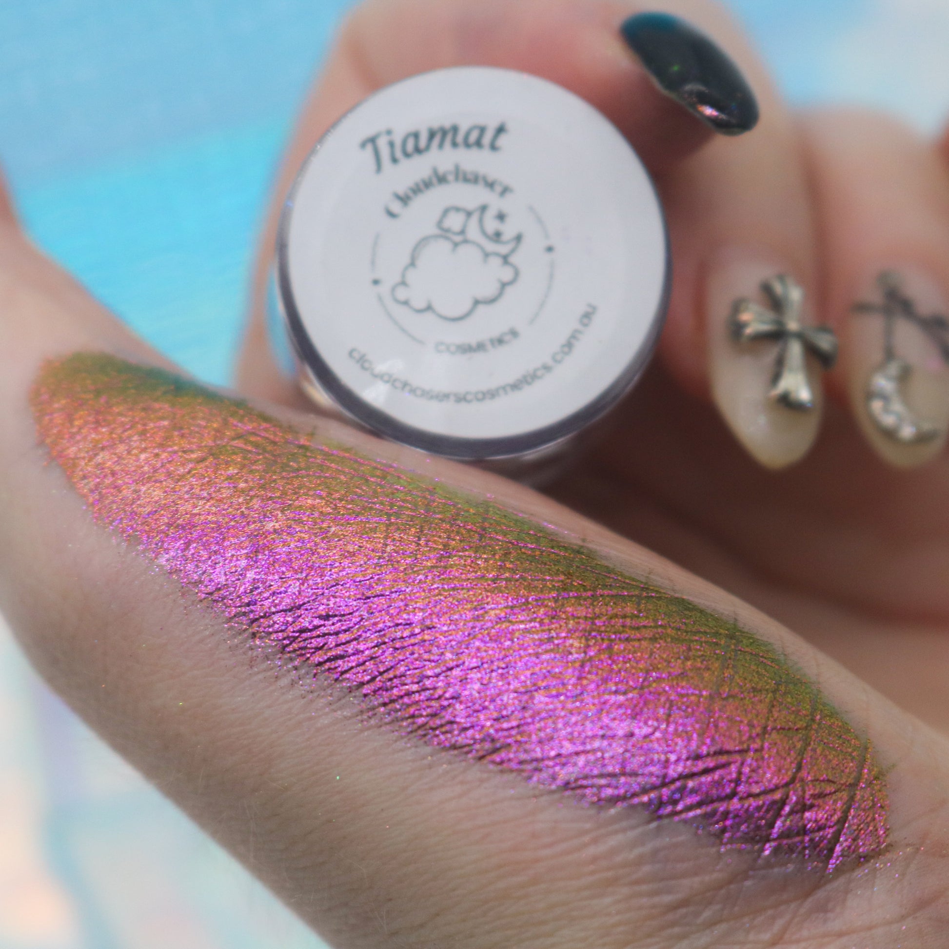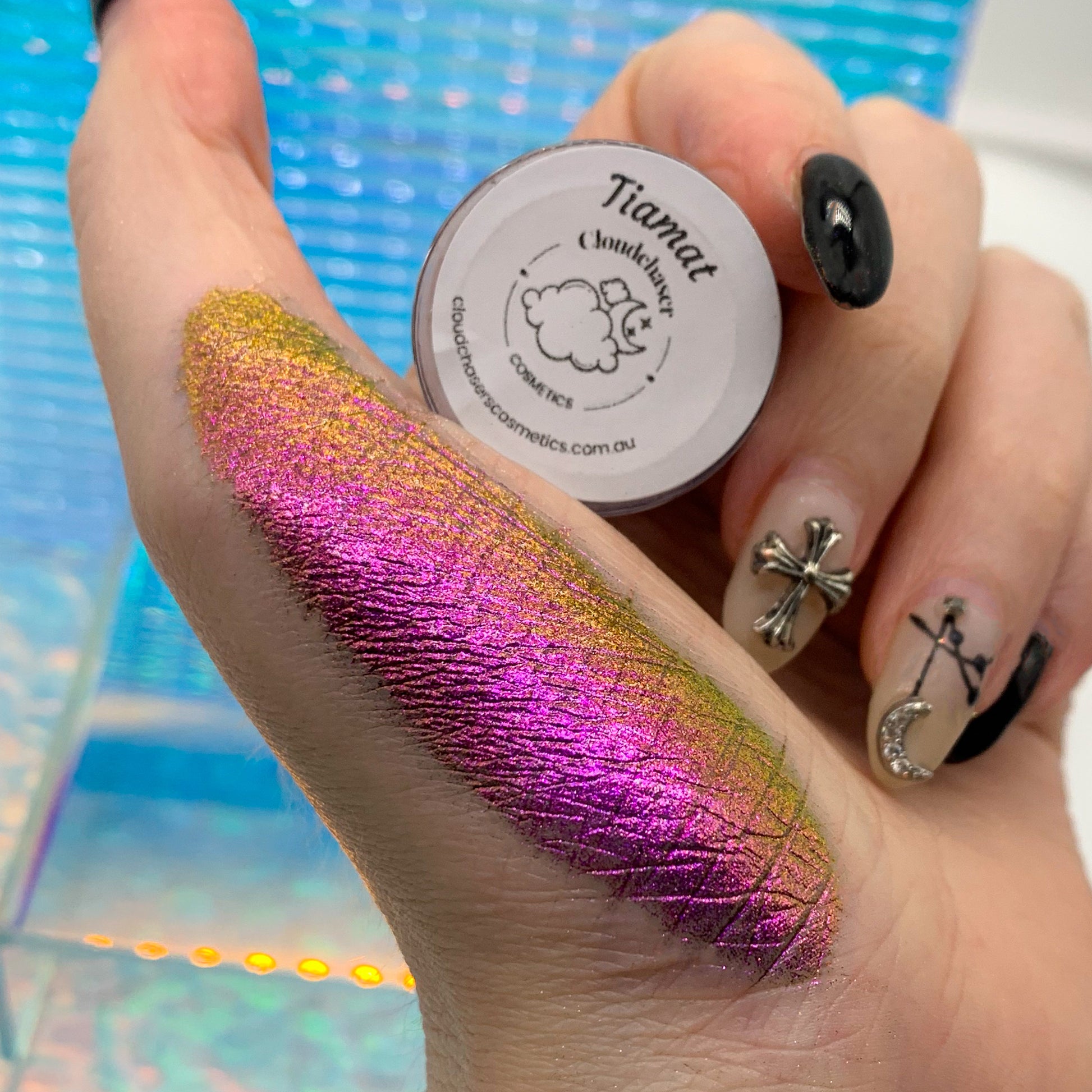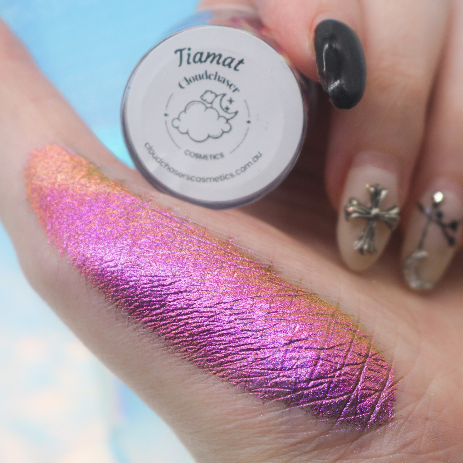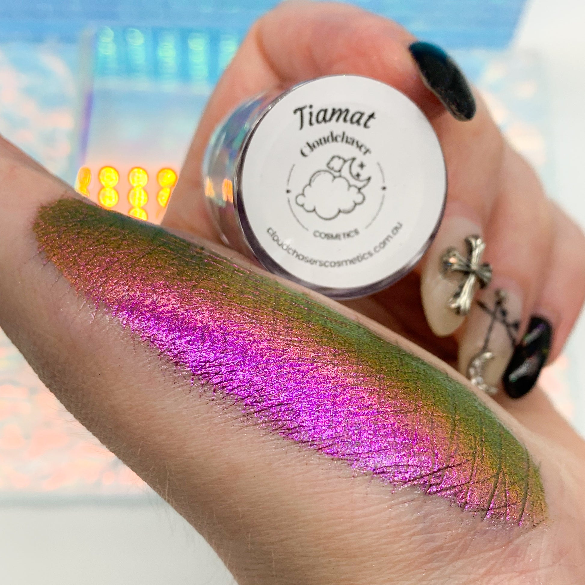 Add a major dose of Multichrome goodness to your makeup look with Tiamat. A gorgeous rich shade with shifts of hot pink, orange, brown and olive.