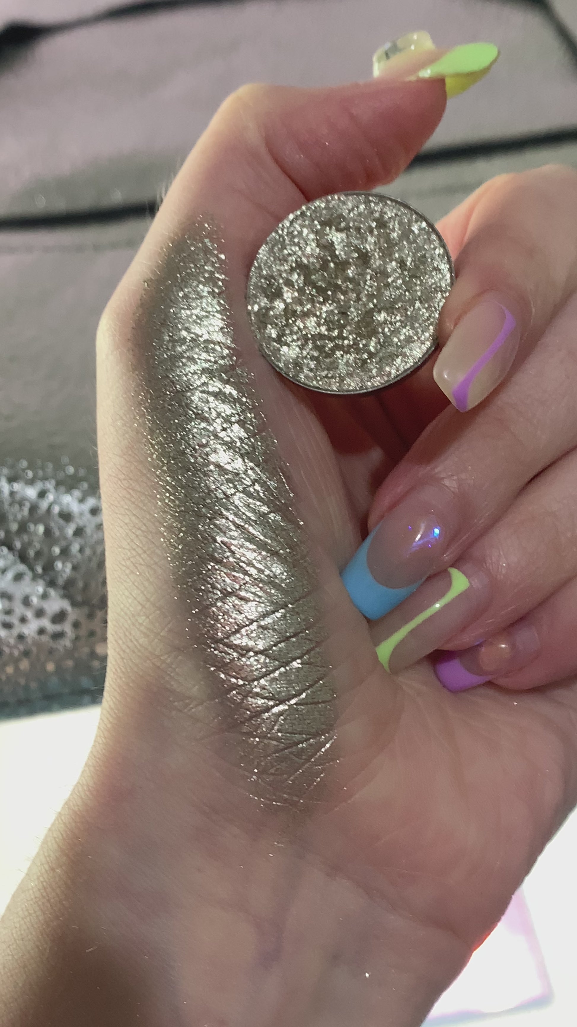 Lumos, a spellbinding shade that is an absolute necessity in your collection! Prepare to be enchanted by this extraordinary silver hue that transcends all expectations. It embodies the essence of liquid metal, flowing effortlessly upon your lids. With its remarkable opaqueness, this shade emanates a commanding presence that demands attention. Lumos has the same formula as our eyeshadow Aurea Ignita (a customer favourite - this formula is somewhat flakey but melts instantly upon application. It gives a wet, foiled metallic look.)