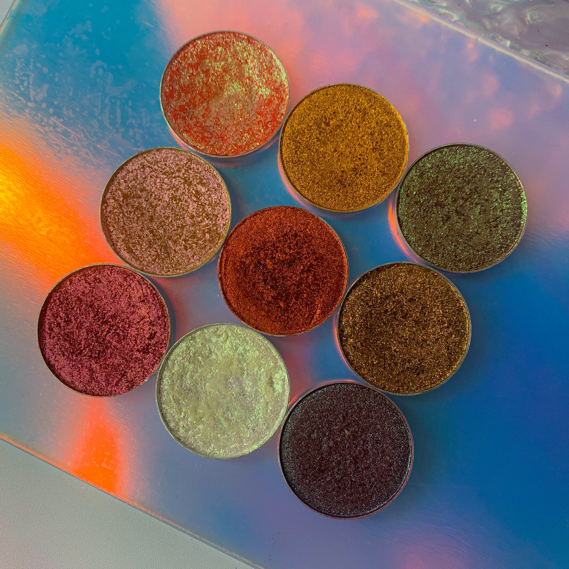 Introducing the Mythic Realms bundle, a custom curated collection of nine eyeshadows that will transport you to a world of fiery, warm hues and mythical magic. Each shade is expertly crafted with a unique blend of finishes, from stunning shimmers to mesmerizing duochromes, all inspired by the mythical realms of folklore and legend.