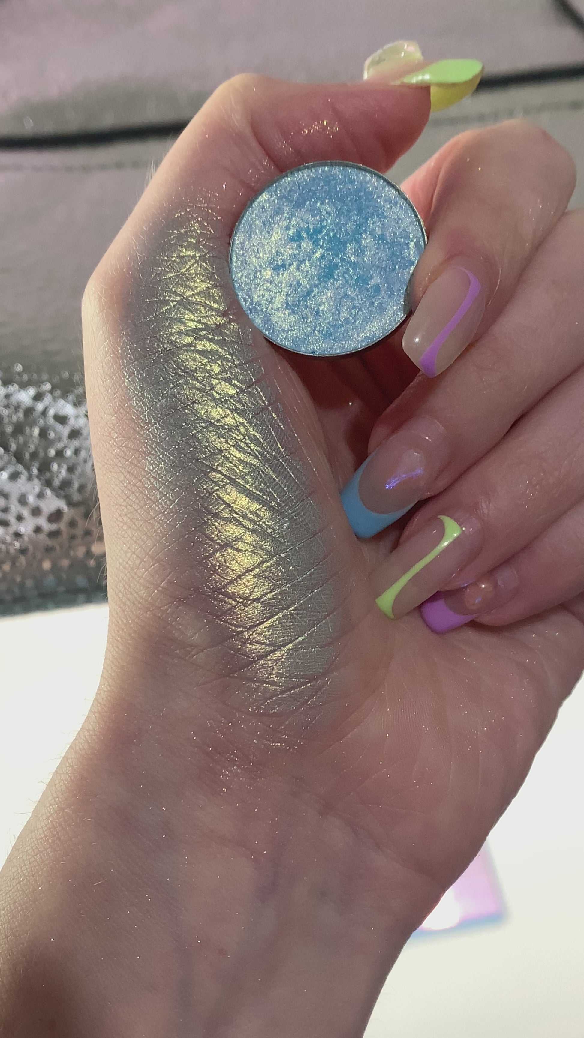 Naiad, is a shade that has stolen our hearts. This unique hue showcases a breathtaking soft baby blue, adorned with an intoxicating golden pearly shift. With its opaque and velvety texture, Naiad effortlessly glides on, ensuring a seamless application.
