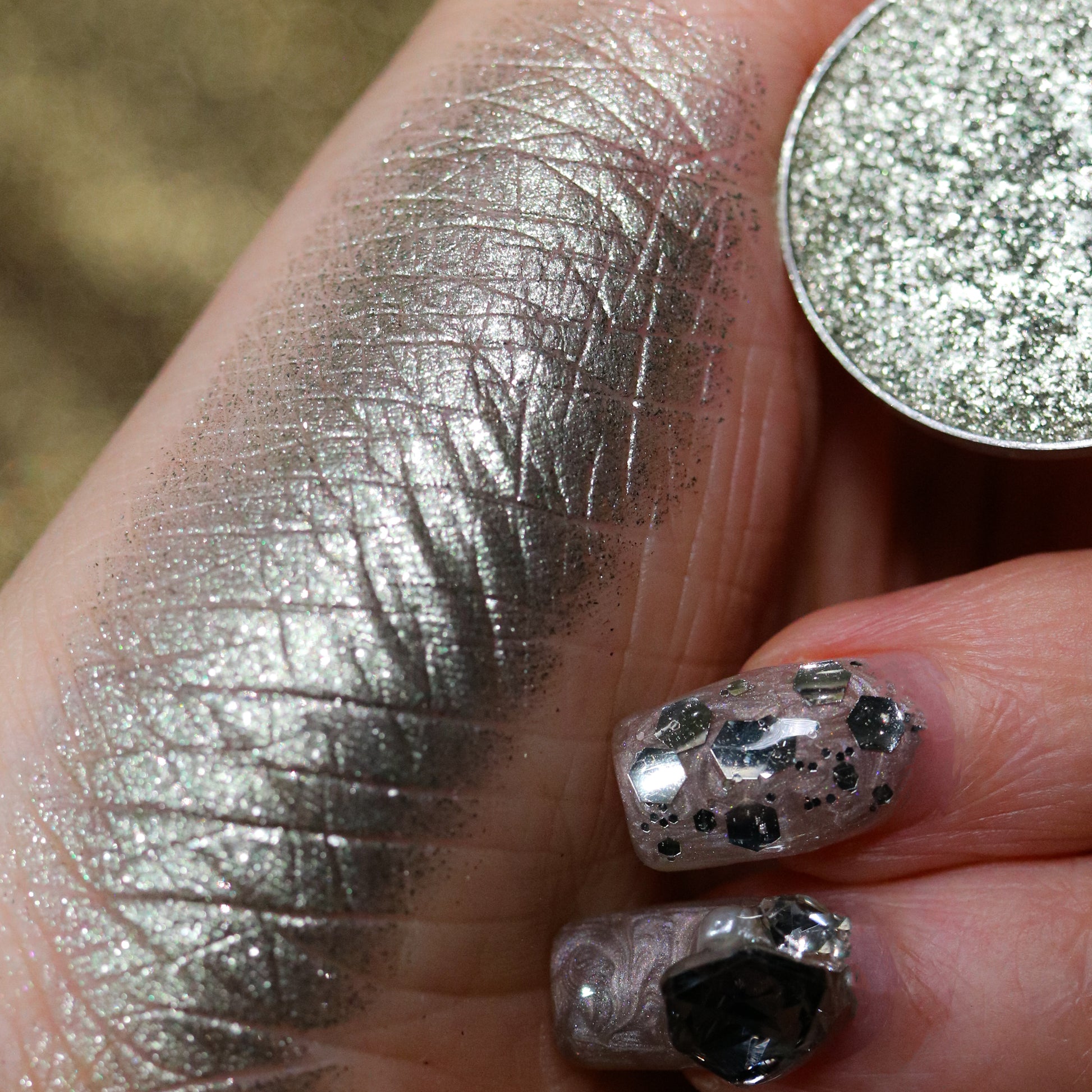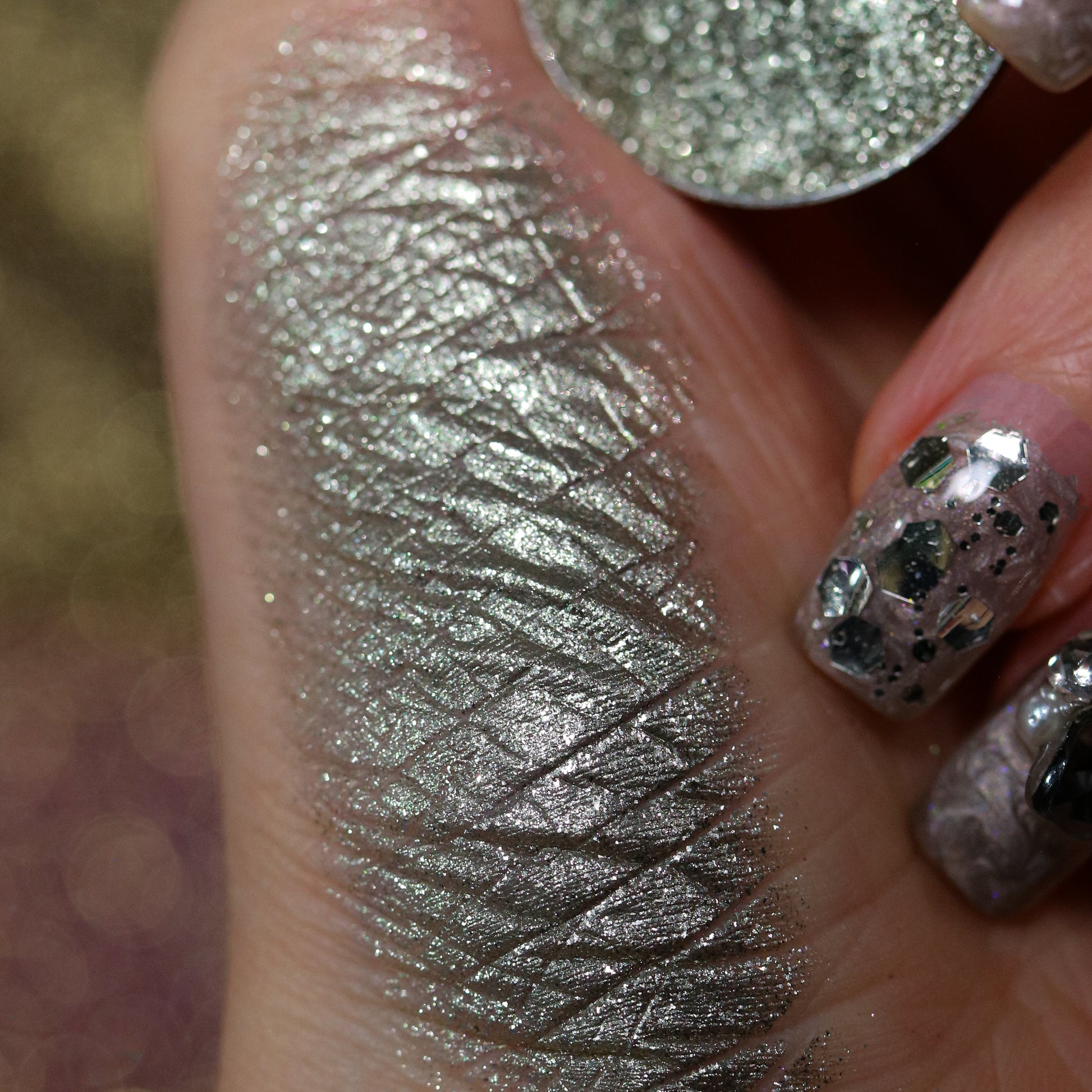 About Texture/Finish: Sy[LV]anite is a Metallic shade. This shade has an opaque finish with a hint of sparkle and a reflective metal like sheen.