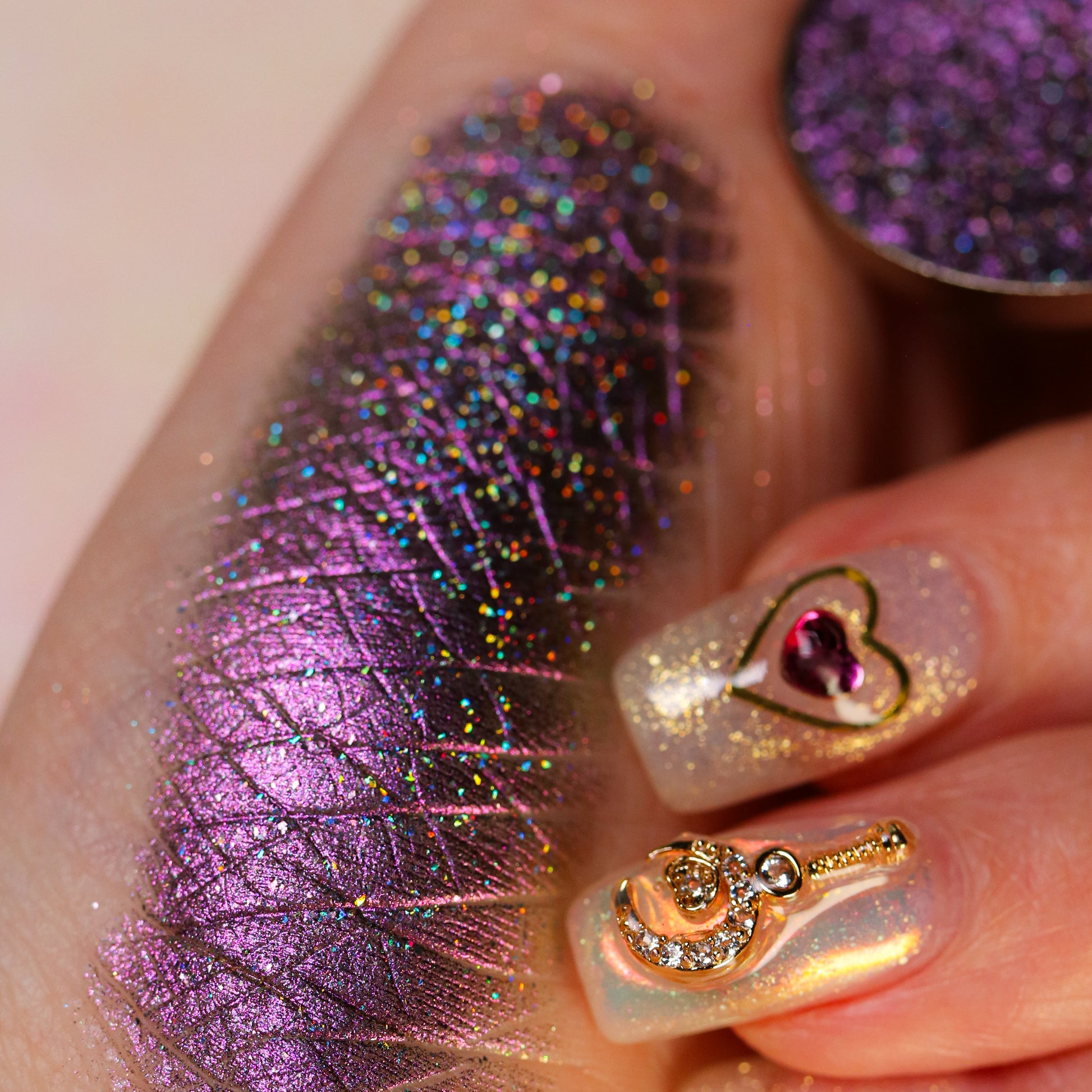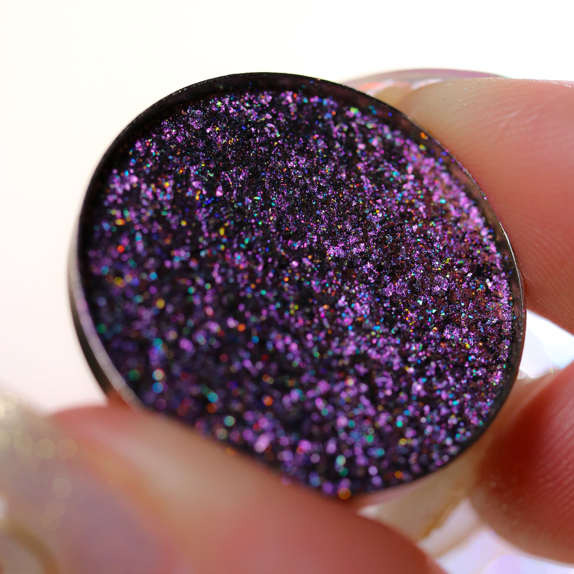About Texture/Finish: Shimmer Vortex is a pressed holochrome with a smoother, slightly squishy formula. It has a finish that is highly reflective. The texture is soft and squishier with alot of glide and slip.