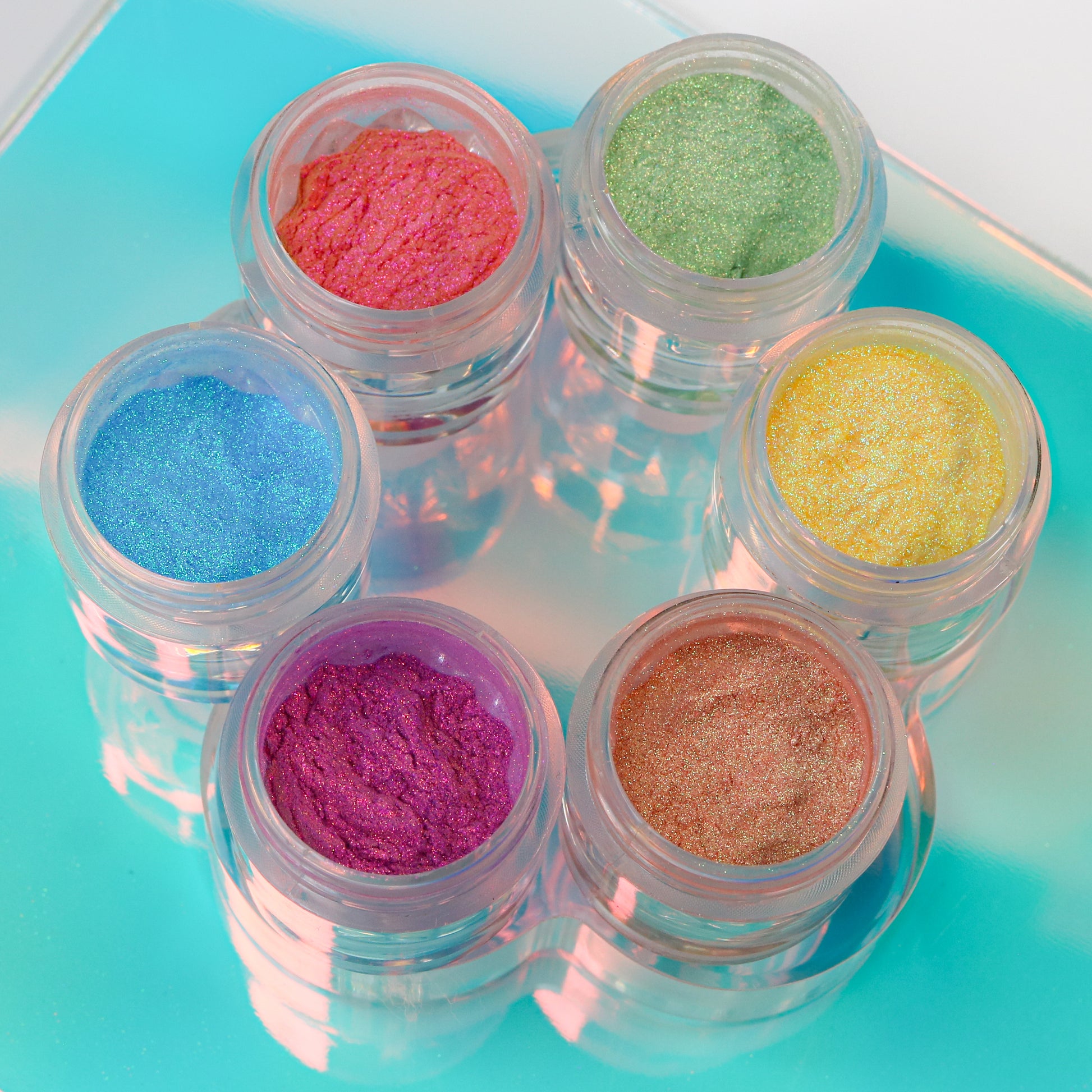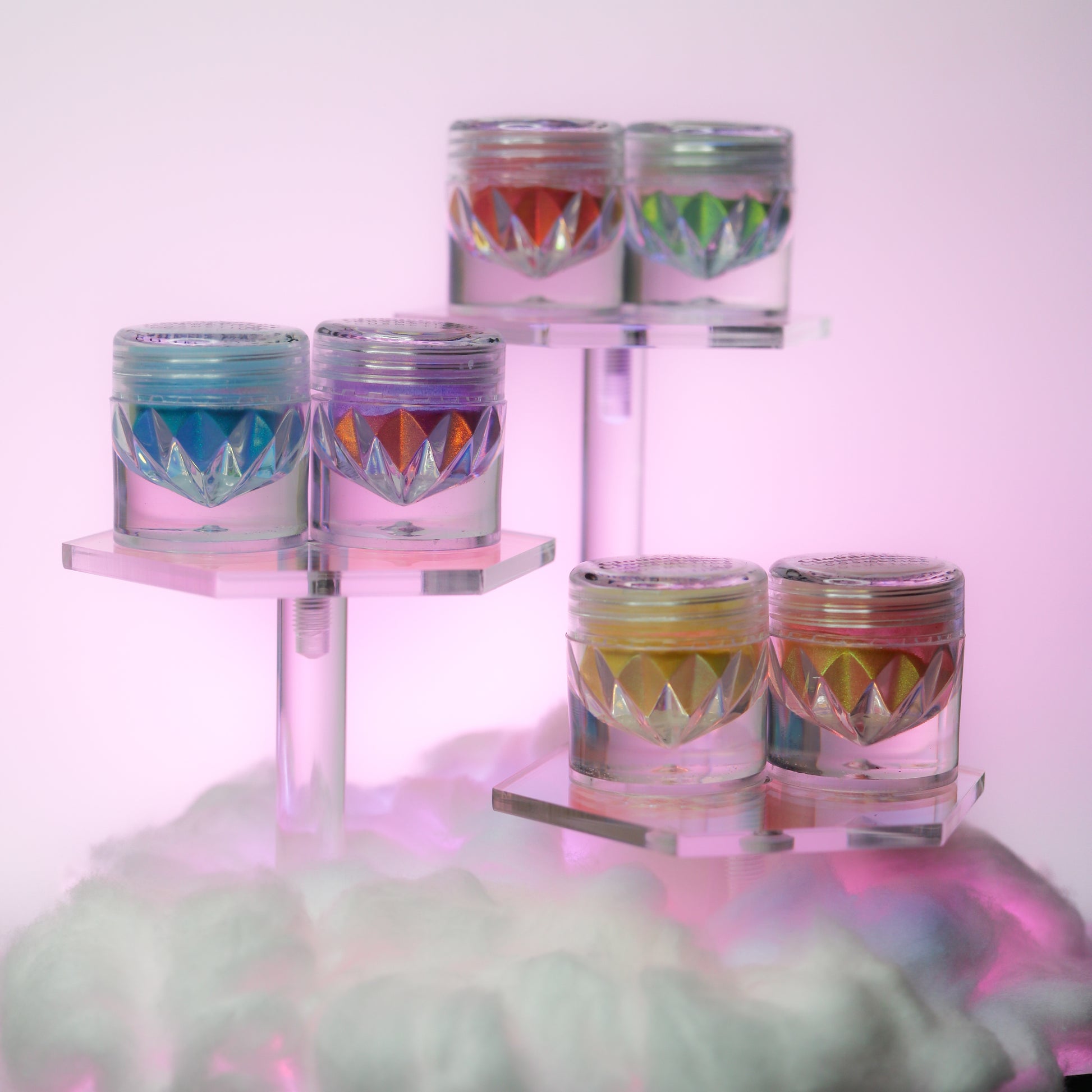 Our Cloud Dust Multichrome Loose Pigment Bundles are perfect for anyone looking to add a multi-dimensional effect to their makeup looks. These loose pigments offer a mesmerizing shift of colors, making them perfect for creating eye-catching looks that will turn heads. With a variety of shades to choose from, including holographic and iridescent options, you can mix and match to create your own unique look.