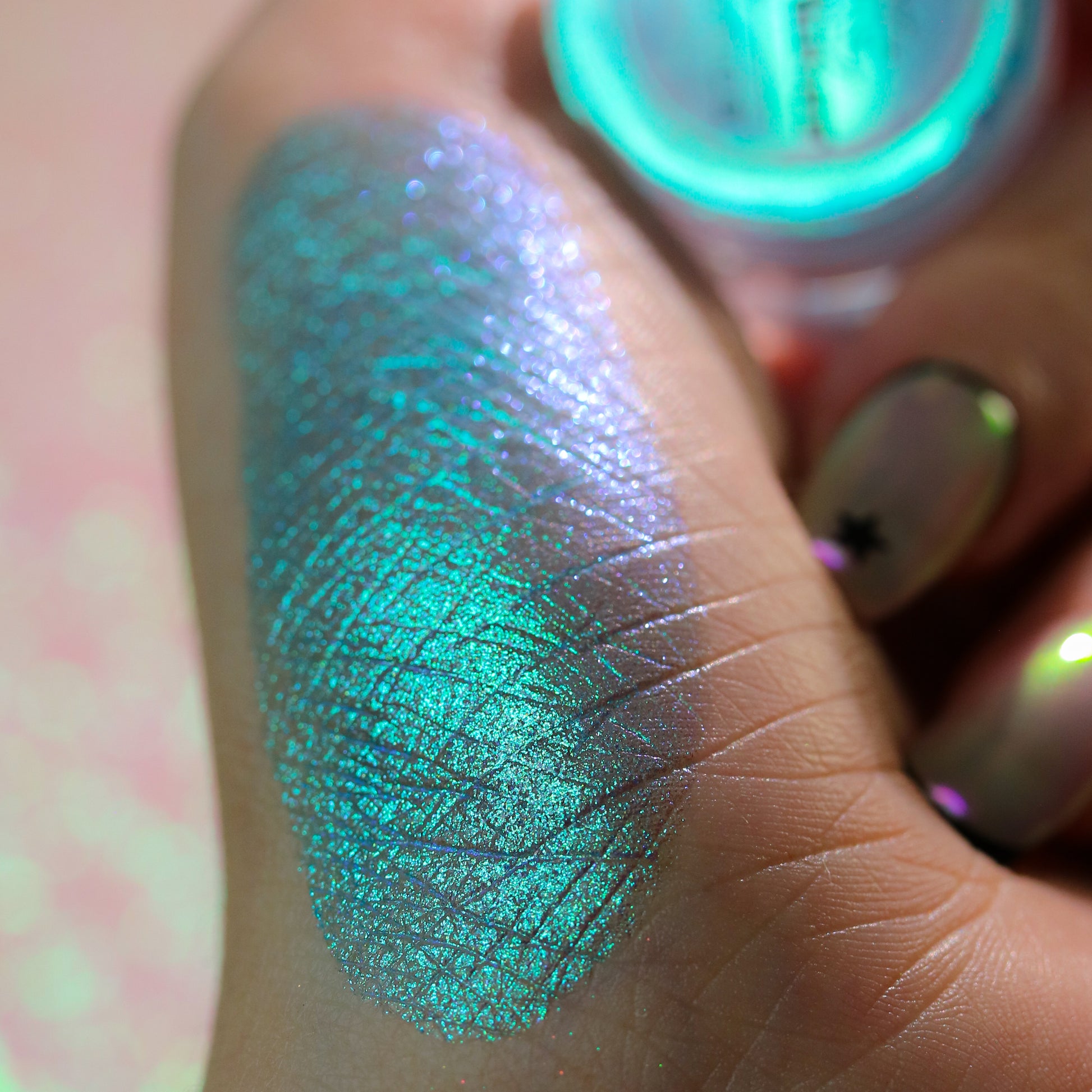 The Ominous Ostara Collection has a smoother finish & formula when compared to our other Cloud Dust Collections. These shades are shifty, and will look very different depending on the base you lay them over. They can be worn alone or make amazing topper shades. They have a sheerer base that can be worn as such, or built up to a more opaque finish.
