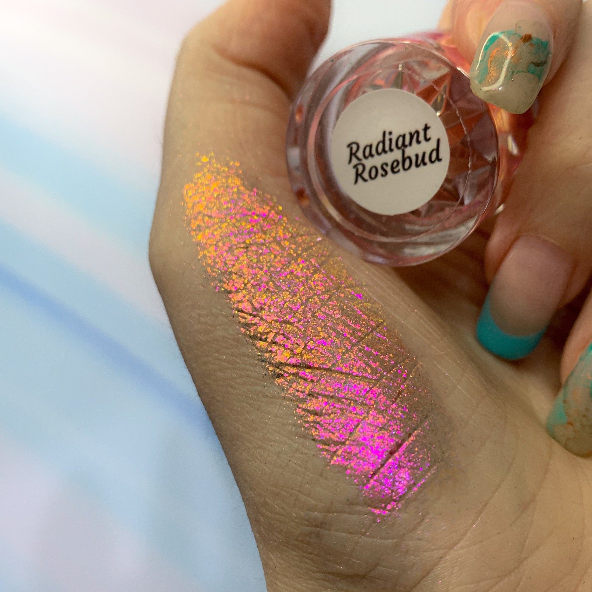 Experience the beauty of a blooming rose with Radiant Rosebud! This vibrant pink pigment is more than just a pop of color, with its mesmerizing shifts of gold and orange.