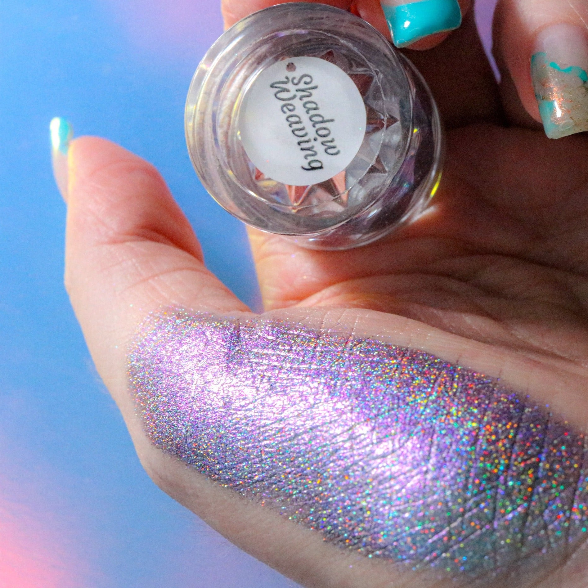 Step into the shadows with Shadow Weaving! This deep, blueish pigment is the perfect choice for anyone who wants to add a touch of mystery and intrigue to their look. With its mesmerizing shifts of violet, purple, green, and teal, all topped off with a magical holographic flip, Shadow Weaving will leave you feeling like a true sorceress.