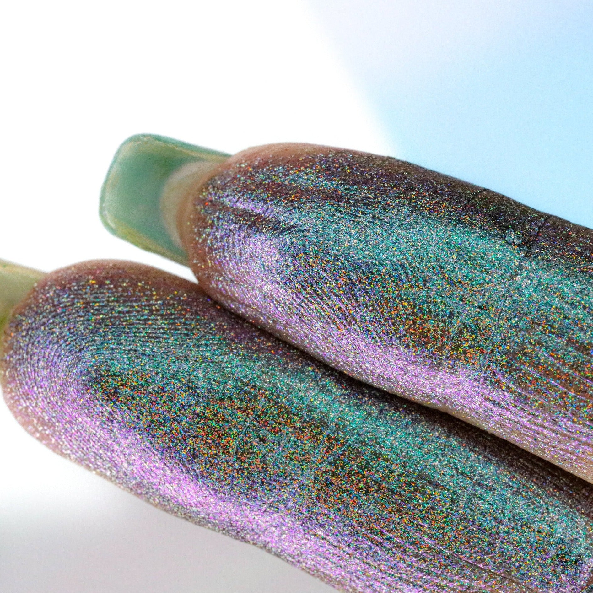 Our Sorcerer's Spectrum collection is an exciting new Holographic Multichrome Formula! These shades have a deeper base and are very opaque with a beautiful sparkly, shifty finish.