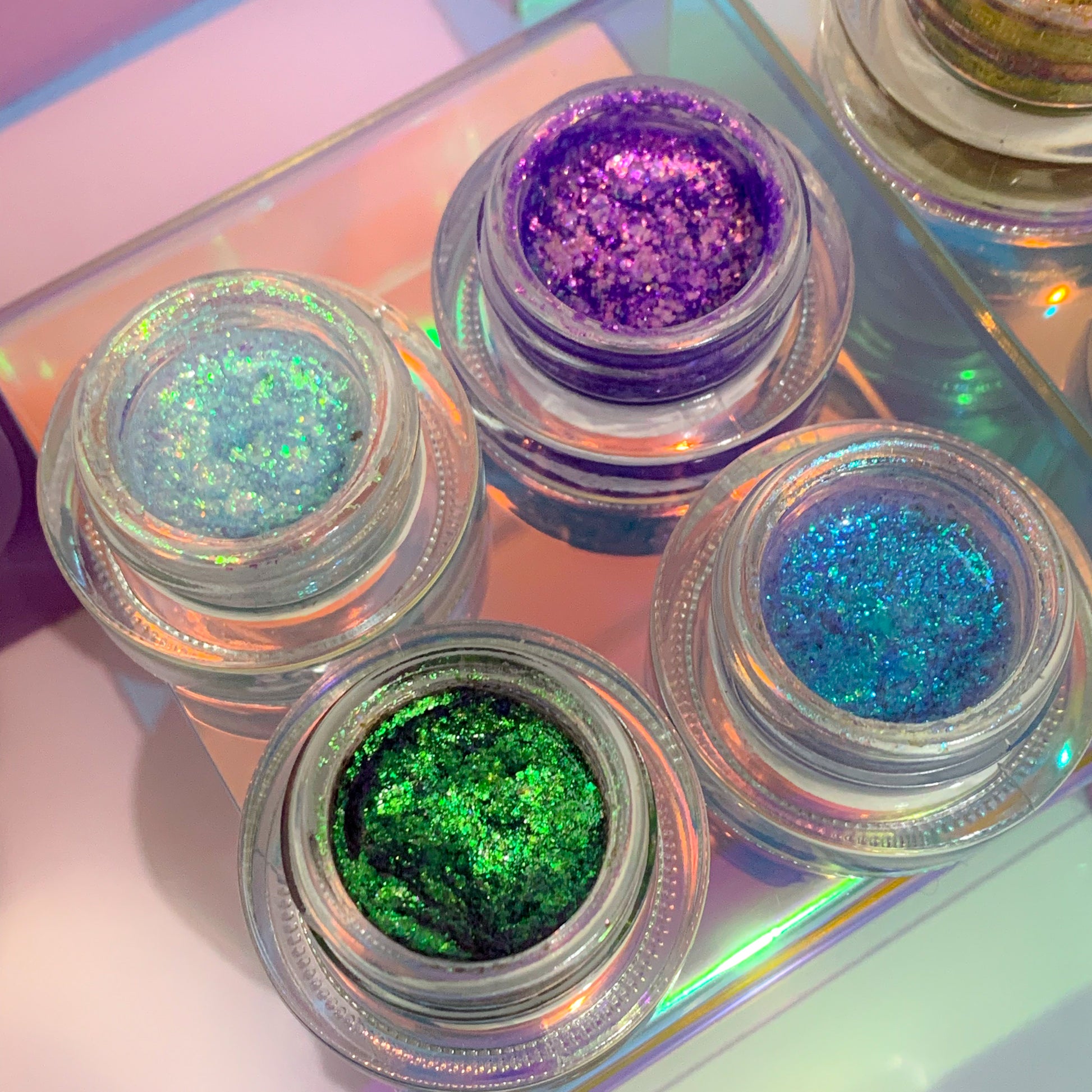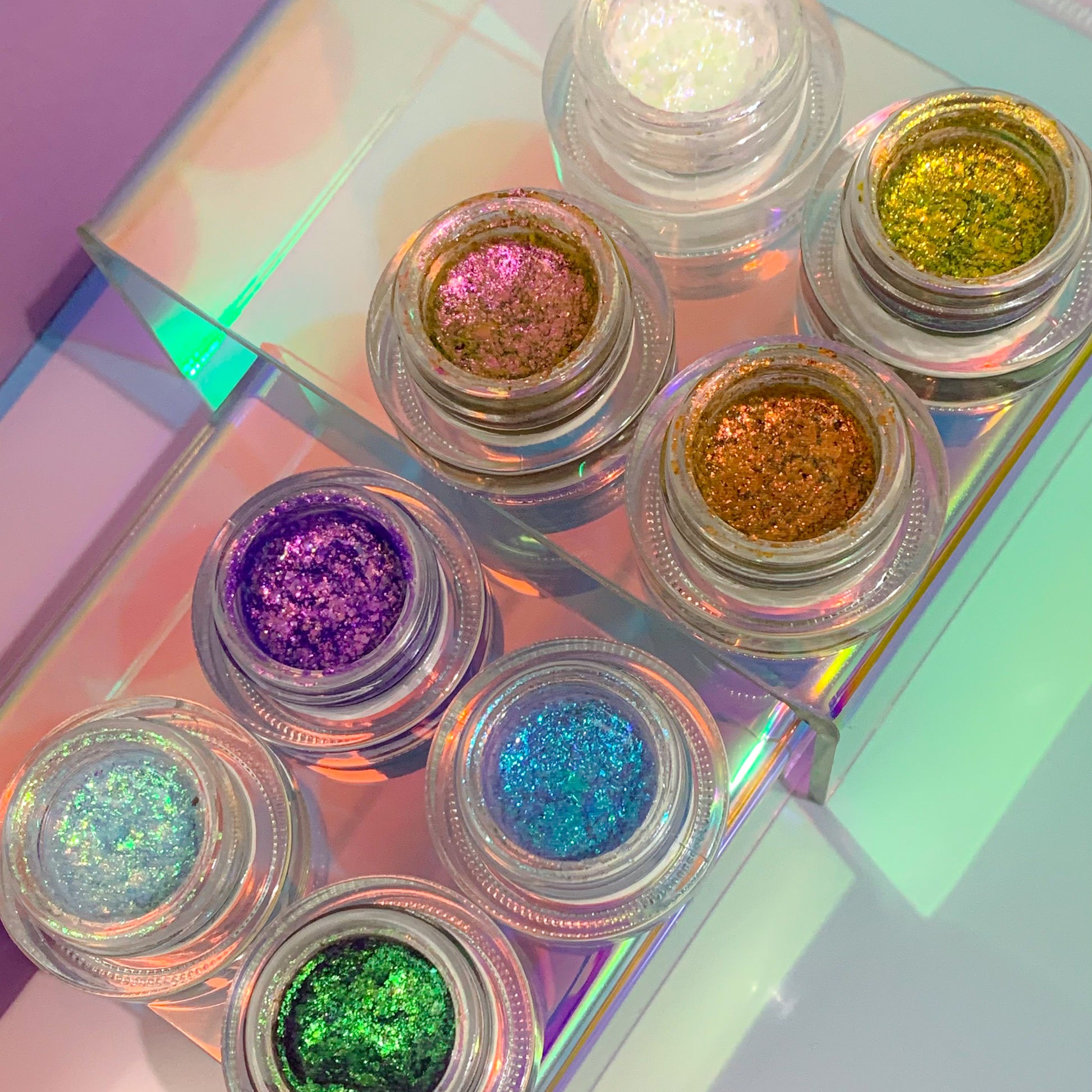Our Utopian Cream Flake Bundles are a must-have for anyone who loves experimenting with multichrome products. These unique flakes offer a creamy formula that glides on smoothly, leaving behind a dreamy, shimmery finish. Our Utopian Cream Flake Bundles come in a variety of multichrome shades, so you can choose the perfect one to complement your look.