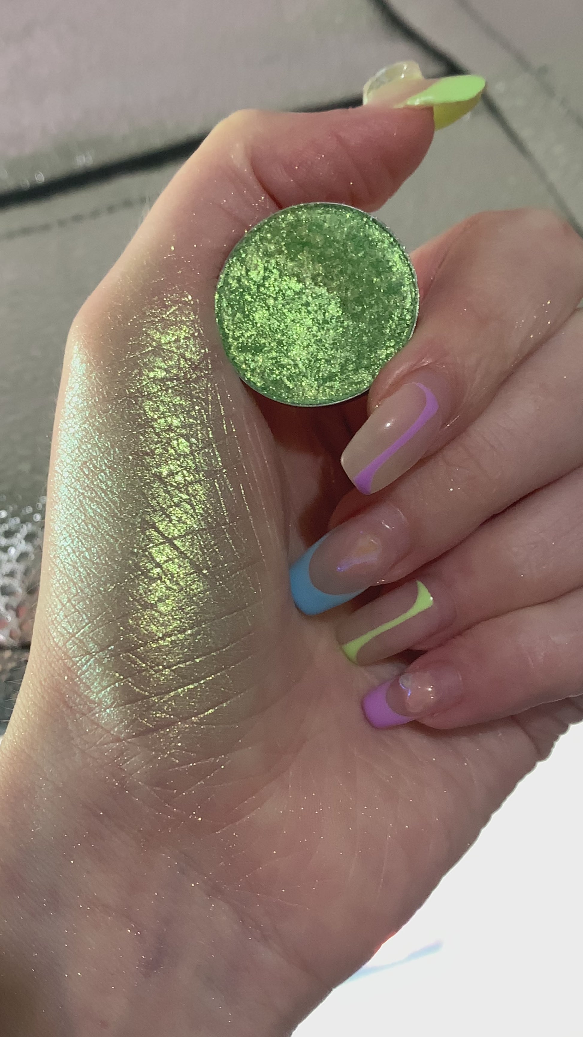 Whispering Leaves is a stunning soft green with pearly golden / yellow shifts. This shade is lighter than our eyeshadow Summon, and has a delicate, spring-like feel to it.