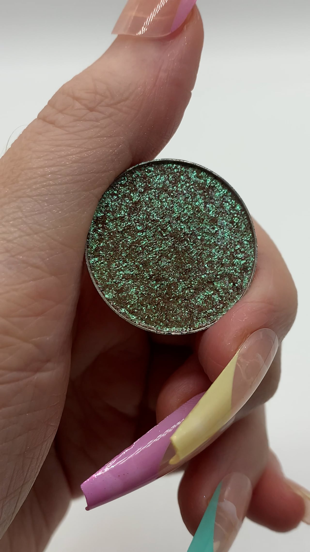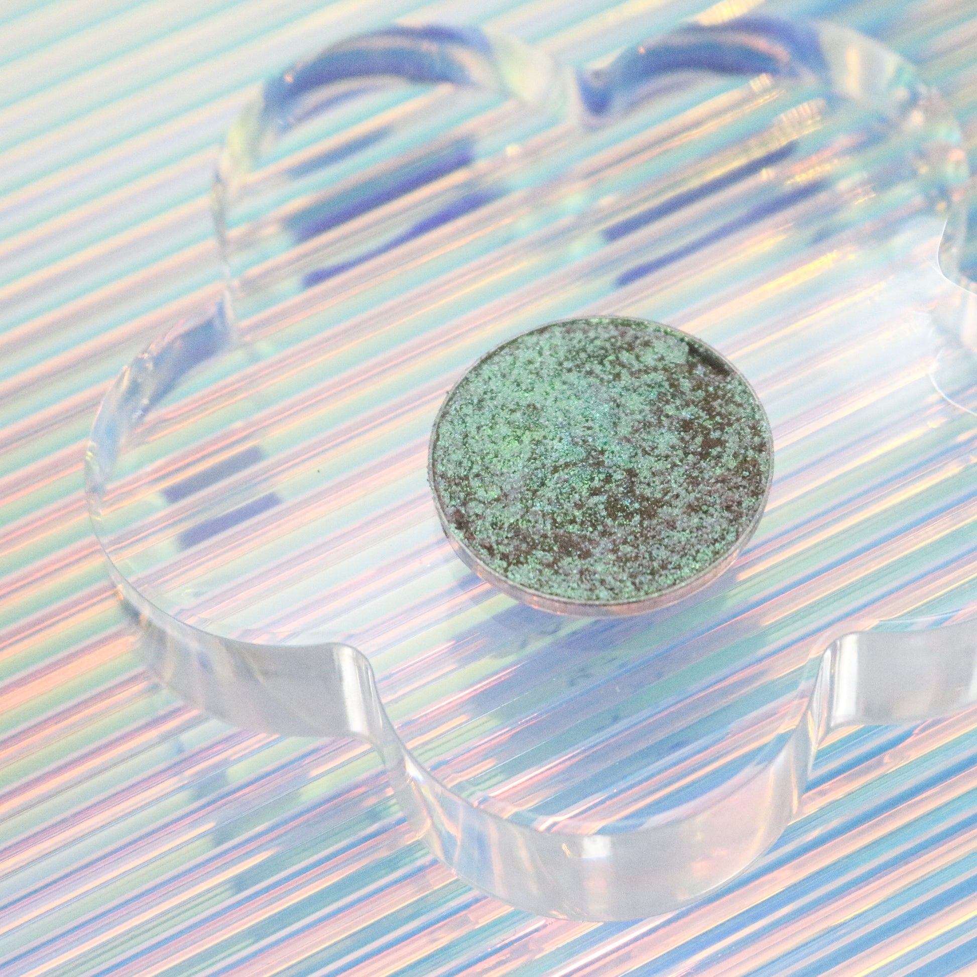 Zephyrus is a unique sparkly shade that has a green/ beige tone and hints of lavender shifts. This shade has a sheer base and loads of micro glitter.